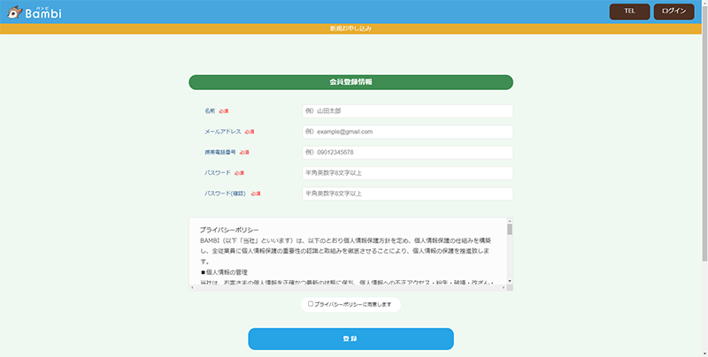 Bambi(バンビ)の申し込みには下記のお客様情報が必須となります。